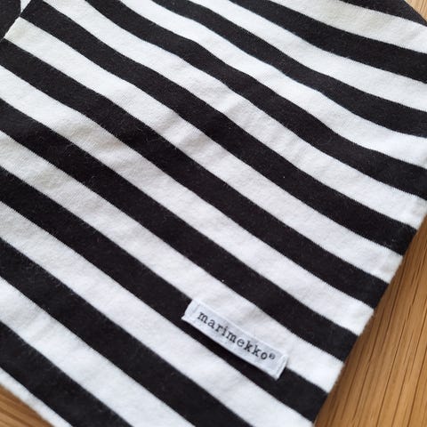 Pieneksi jäänyt täysin uudenveroinen Marimekon sinivalkoraidallinen tasaraitapaita. Koko xs, unisex malli.