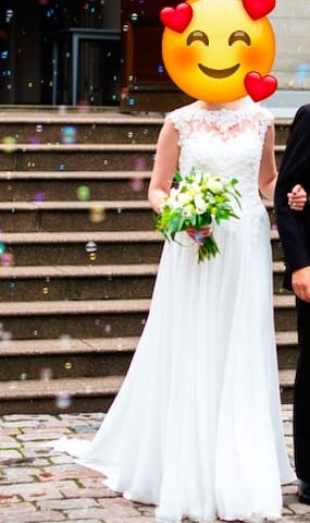 Atelier Diagonal / Pronovias merkkinen hääpuku. Alkuperäinen hinta yli 2000 €, ostettu uutena Stockmannilta. Koko 32 (=Espanjan koko 36), mutta hieman kavennettu. Hyväkuntoinen luonnonvalkoinen puku, jossa laahus. Upea tyllikangas, jossa pitsikuvioita. Kauniisti ja luonnollisesti laskeutuva. Mukana myös alushame sekä vanne ja huntu. Kerran käytetty ja pesetetty sen jälkeen pesulassa.