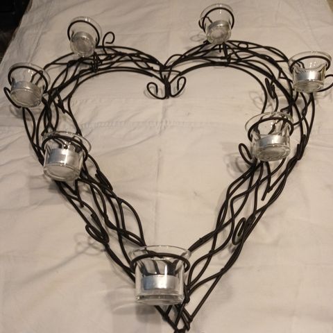 Metallinen sydän,jossa viini punaisia koristeita
