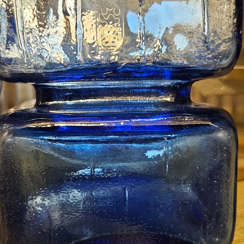 Kun kuvaa katsoo tarkkaan niin sisällä näkyy alkuperäinen vanha Riihimäen Lasin tarra.