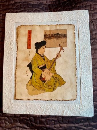 Kiinalainen taulu Suzhoun kaupungista. Taulussa puukehys. Koristeellinen kiinnitys seinään. Koko 78x78 cm