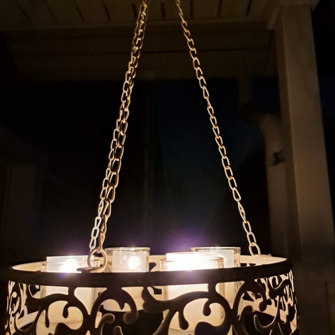 Kuusikynttelikkö pienille kruunukynttilöille tai pallokynttilöille. Painava, tukeva materiaali. Korkeus 25 cm ja leveys 15 cm. Täysi kynttiläpaketti pieniä valkoisia kynttilöitä mukaan.