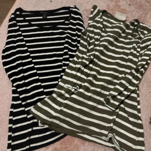 Hyväkuntoisia vähänkäytettyjä raidallisia pitkähihaisia puseroita