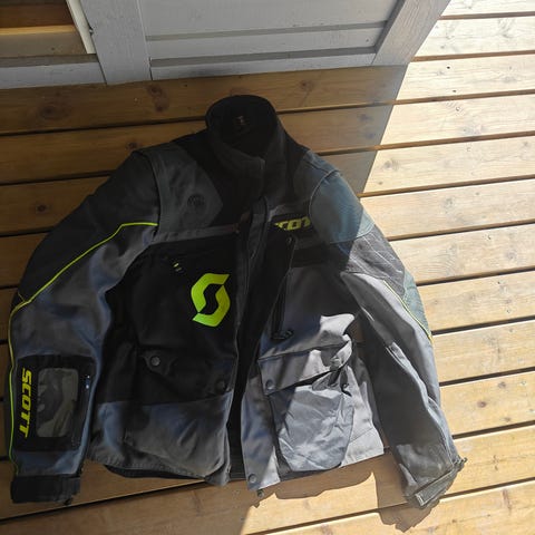 Joutilaaksi jäänyt ajo takki. Kaikki suojat paikoillaan ja irti vuori..