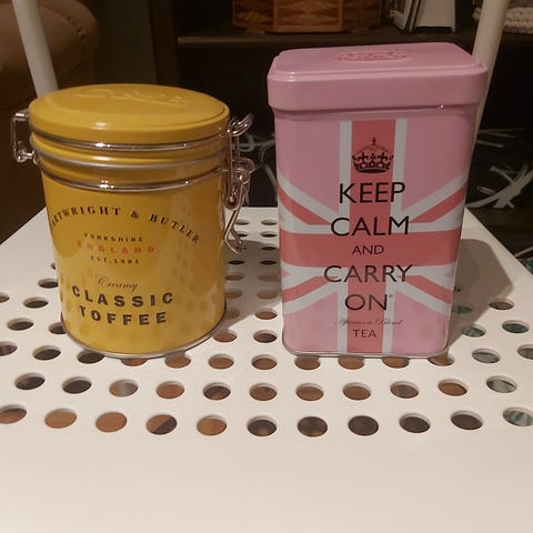 Harrods Morning Pure Tea Bags purkki, metallia, Mitat: 115mm x 90mm x 90mm.
