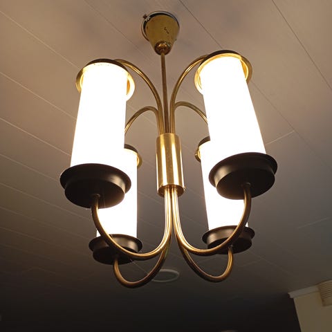 Nordalin kattovalaisin. Rautarunko on antiikkisen näköinen. 69 lasikolikkoa roikkuu 7 kerroksessa rautakehyksessä. Kuvassa lisätietoa mitoista yms.