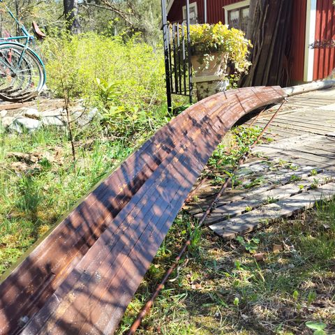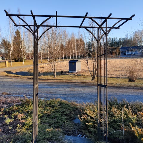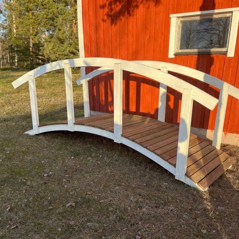 Myydään kaarisilta puutarhaan käyttöön tai koristeeksi vahva kierrätetty galvanoitu teräsrunko kansi ab luokan kyllästetty mänty käsittely Tikkurilan MUSTA valtti