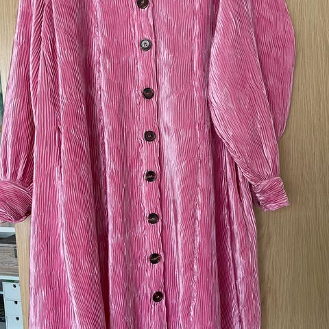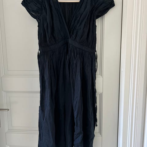 Hengittävää, luonnollista, vilposta, läpinäkymätöntä, laskeutuvaa viskoosia. Viskoosikankaalla kevyesti vuorattu. Koko M, pituus n. 65cm.