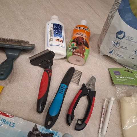 Valjaat.2 kaulapantaa, tassusuoja,shampoo. Ollut 18 kg staffilla