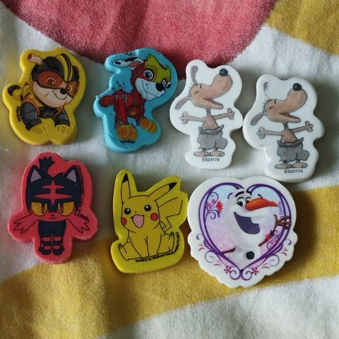 Uudet Pokemon , Frozen, sekä ryhmä hau pyyhekumit. (Keltaista ehkä kerran kokeiltu). Hinta sisältää postikulut.