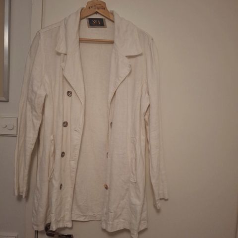 Valkoinen vuorillinen pellavableiseri.Edessä ,takana hihansuissa Brysselin pitsiä koristeena..Kai kai 53cm
