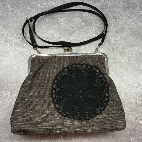 Hopealangasta virkattu kaulus,vanha laukku,ja ja 50- luvulta pukukoristeet huopakukat ,7+ postitus 6