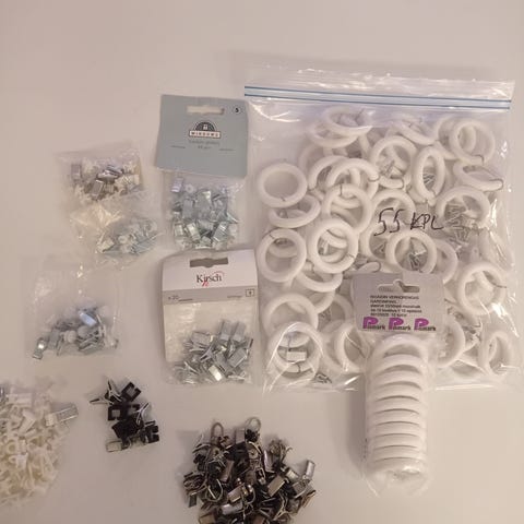 Sekalainen setti verhoille. Voin myydä miten tarvetta ei oo pakko ostaa kaikkia voi tehdä itselleen sopivan setin. Kaikki käytettyjä.