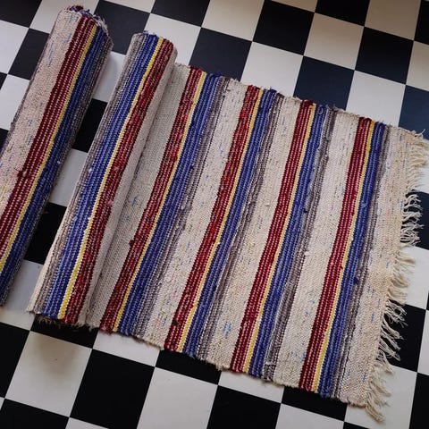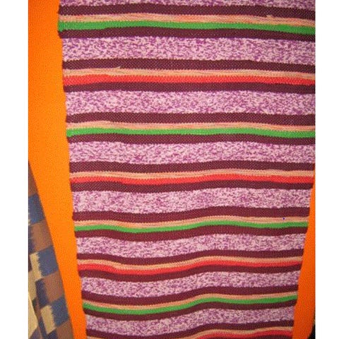Vihreän ruskea räsymatto 145x180, 15 euroa.