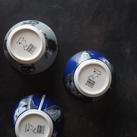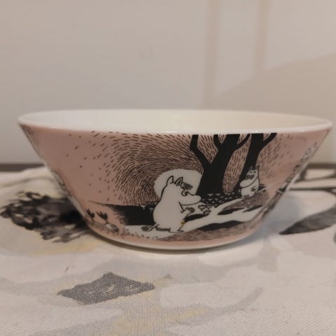 Myytävänä moitteettomassa kunnossa olevat muumikulhot.
