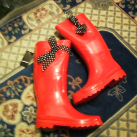 Myydään vähän käytetyt , siistikuntoiset ja täysin ehjät Lemon Jelly muotikumisaappaat koko 36. Saappaat on väriltään kiiltävän punaiset, niinkuin uudet kumisaappaaat on. Varsien yläpäissä on kullanväriset niittisomisteet. Saappaat on mukavat ja tukevat jalassa ja sopii paitsi tallille ja metsäretkille, ehkä parhaiten kuitenkin kaupunkikäyttöön. Saappaat on ratsastussaappaiden malliset. Lemon Jelly saappaat on laadukkaan tuntuiset, made in portugal. Tästä todella tyylikäs osa sadepäivän asuusi edullisesti! Näillä saapastelet kouluun, kerhoon, tallille,työpaikalle tai aivan minne vaan! Nämä on ostettu ulkomailta, Suomessa en ole nähnyt samanlaisia.