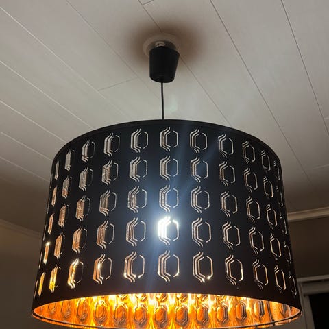Kattolamppu esim. ruokapöydän ylle. Leveys 65 cm, kaksi lamppua. Lamppua on hankala toimittaa postipakettina. Toivottavasti ostaja voi noutaa sen.