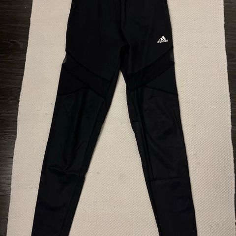 Laadukkaasta ja vahvasta kankaasta valmistetut Adidaksen fitnesshousut. Adidaksen painatus vasemmassa lahkeessa. Molempien lahkeiden suussa muutaman sentin halkio. Materiaali: 9 % polyamidi ja 10 % elastaani.