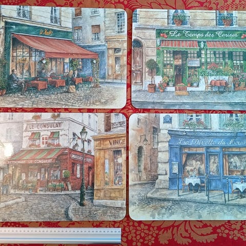 Hyväkuntoiset, pyöreät, muoviset, punaiset ruokailutabletit, halkaisija 36,5 cm. 1 €/kpl.