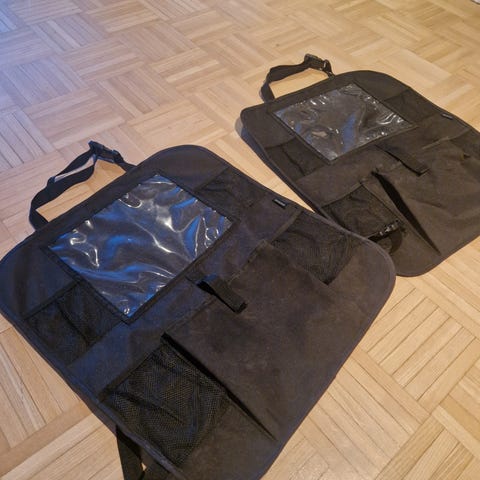 Potkusuoja suojaa auton etupenkin takaosaa takapenkkimatkustajan potkuilta ja sotkuilta. Hinta 5e.
