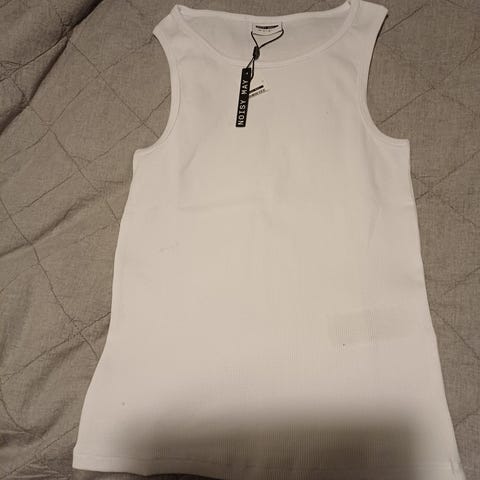 Uusi joustava sileä kaunis valkoinen kukkatoppi. Takaa pidempi helma. Taitaa löytyä koot S, M ja L