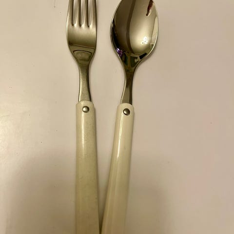 Hackman Hackminna valkoinen otinhaarukka. Pituus noin 20 cm. Vain vähäisiä käytön jälkiä. Ei värimuutoksia.