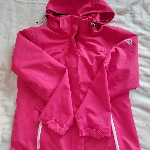 Raiski-merkkinen vettä ja tuulta pitävä vaaleansininen ulkoilutakki DrymaxX-kalvolla.