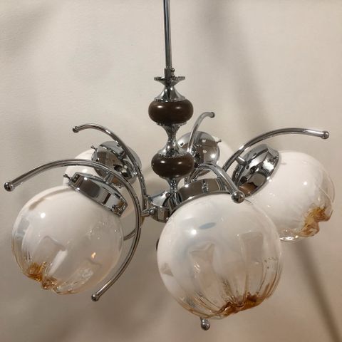 Myynnissä on hienoa 5 haarainen kattokruunu henkivää retro lasikuvulla.