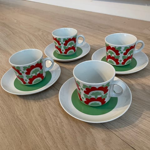 Kahvikupit, pulla-/leipälautaset Arabia Reimari