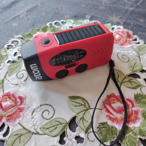 Luxor matkaradio . Laitteessa on suuri viritysnuppi ja 3 esiviritys kanavaa (muistia) . Etupuolella on voimakkuden ja äänen värin säädöt. Takana on teleskooppiantenni ja paristokotelo, joten laitetta voi käyttää sekä verkkovirralla että paristoilla ). Väri on harmaa mustin yksityiskohdin. Soveltuu radion kuunteluun esimerkiksi keittiössä, työhuoneessa tai mökillä.