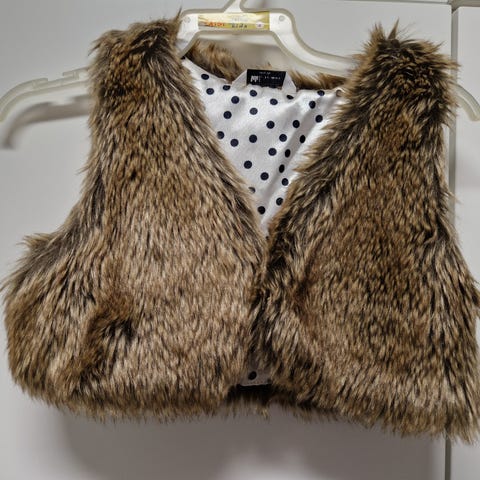 Upea kerran käytetty tekoturkisliivi kokoa 110/116.