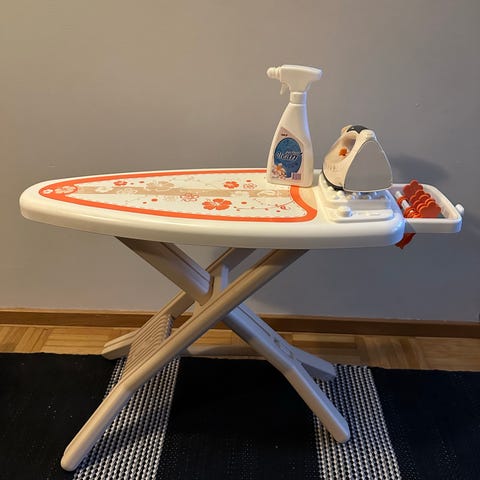 Hellyttävän söpö Retro Ikean lasten silityslauta. Puuta ja vaneria, irrotettava ja pestävä kangaspäällinen.