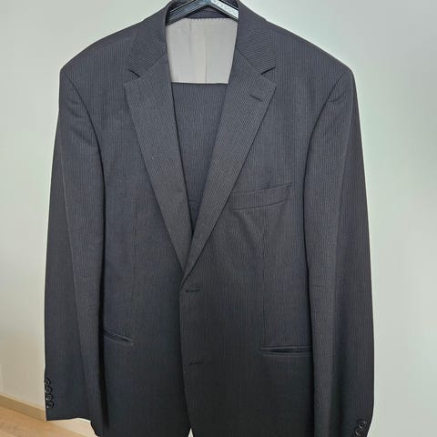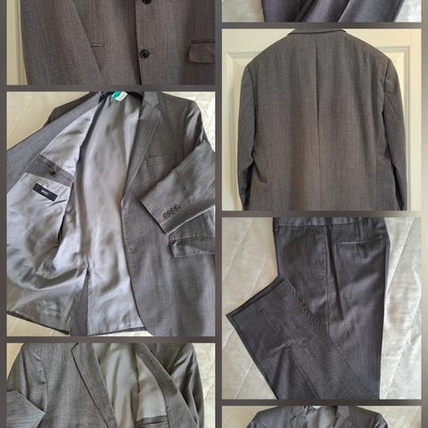 COS tumman harmaa pukupaketti, slim fit. Puvuntakki koko 52, housut 48. Erittäin hyvässä kunnossa. Ei tahroja.