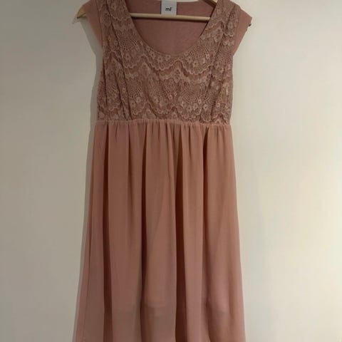 Pari kertaa häissä käytetty raskausajan mekko. Koko s, väri roosa. Mukavan joustava ja kevyt mekko ja mahtuu isonkin mahan kanssa. On imarteleva myös ilman mahaa:)