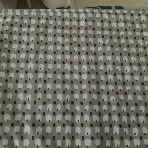 Puuvilla/akryylipinnoite joten helppo pyyhkiä ja pestä. Muutama pieni jälki saattaa liitoissa olla muutamasta kuva.Myyn kaikki kerralla. Jos postitus lisätään ne hintaan