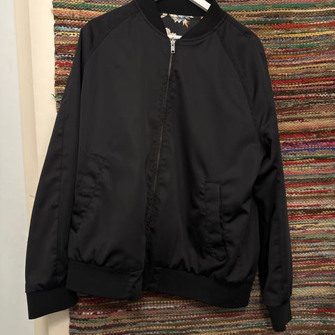 Objectin nätti musta pilottitakki/jakku, neppikiinnitys, kukkakuvioinen. Koko 34. Ollut päällä vain kerran.