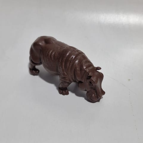 Itse tehty pehmeästä ja paksusta samettilangasta. Pituutta virtahevolla on n. 57 cm ja korkeutta n. 23 cm.