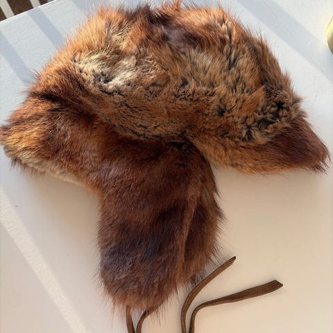 "Poroporvarin" 60-luvun Friitalan pitkä talvitakki lämpimällä lammasvuorella. Lisäksi "krimin-nahka" teetätetty hattu. Koko n.58 plus-miinus2