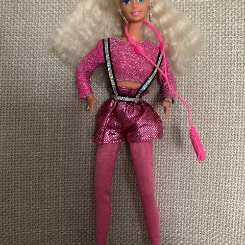 Neljä hyväkuntoista tanssibarbia. Mukaan tulee soiva ja pyörivä tanssilava. Tanssilavasta puuttuu tukiteline.
