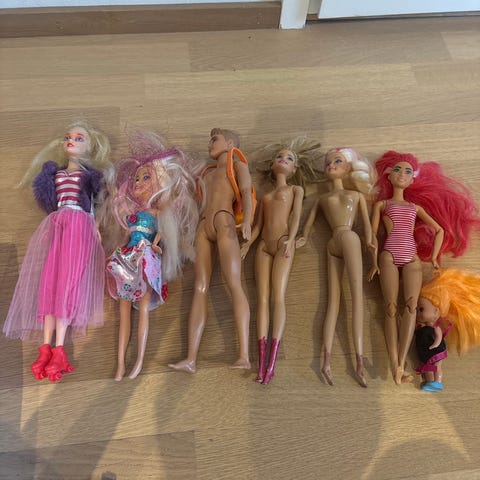 Myydään Barbie ja Ken -setti. Mukana lapset, sänky ja pientä sälää.