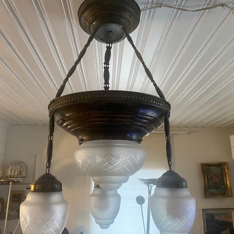 Nyt myynnissä erittäin harvinainen ja vanha ehjä katto valaisin . Kauniit ruusu koristeet . Posliini kupu koristeella.
