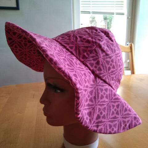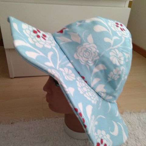 Retrokankainen vuorellinen hattu. Koko 60cm. Kierin leveys 8,5 cm.