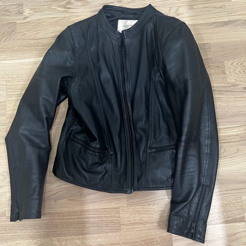 Mokkanahkainen biker! Koko 36. Pari haaleaa pientä tahraa, mutta eläväisen pinnan vuoksi ei juuri erotu käytössä. Ovh 199.