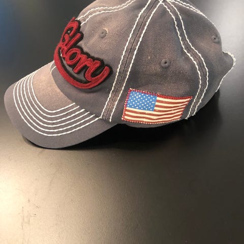 1. Hipfigerin harmaa denim -lippis. Käytetty, mutta erittäin siisti ja ehjä. Kokosäätö takana.