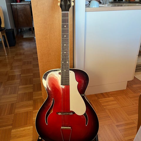 Kitara on melko varmasti vuodelta '57. Se on hyvässä kunnossa ja erinomaisesti soitettava. Soi myös akustisesti kuin unelma.