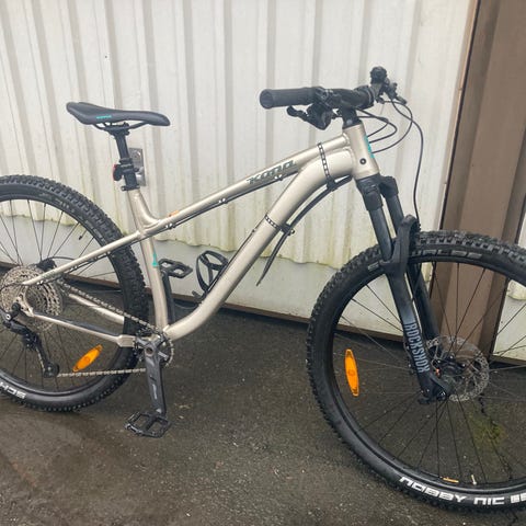 Satula ja ohjaintangon gripit vaihdettu ergonomia mallisiksi. Originaalit saa mukaan, jos tarvit niitä. Muckynuts lokarit laitettu ja juomapulloteline, polkimet vaihdettu muistaakseni Racefacet, (originaalit oli jokku muoviset). Polkimissa näkyy kiven kolhut, on siis ajettu maastossa.