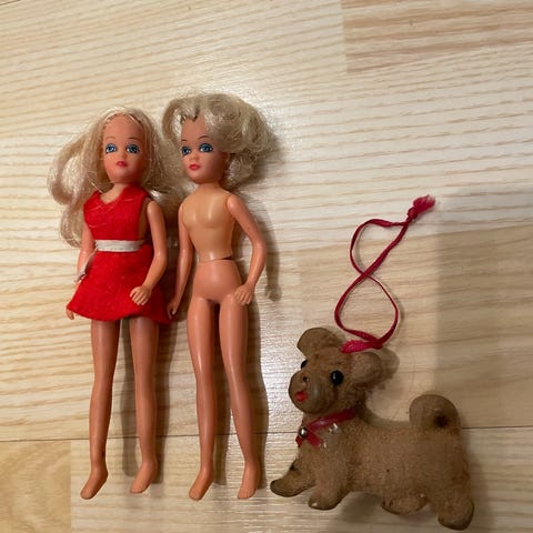 - pestyjä ja paikkailtuja, sekä täysin ehjiä nukkien ja nallen vanhoja vaatteita 60-80-luvuilta, taidolla neulottuja vauvanuken vaatteita, nukkien juhlavaatteita yms.,