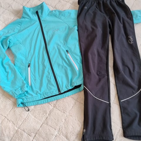L- kokoinen hiihtoasu. Takissa ja housuissa kahdet taskut. Lahkeissa sääriin asti ulottuvat vetoketjut. Ollut vähällä käytöllä ja on siistissä kunnossa.