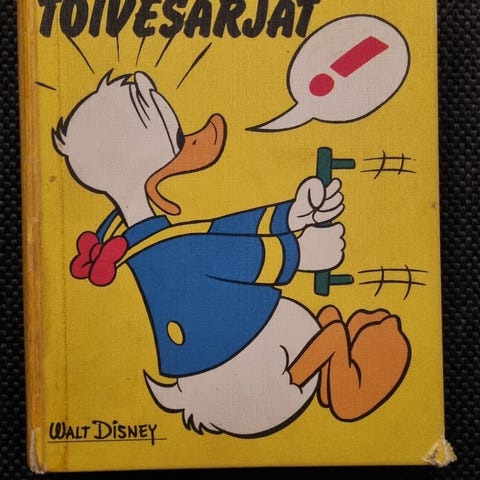 Myydään Aku Ankan toivesarjat -kirja. Kunto muuten melko hyvä, mutta kannet hapertuneet ja niistä irtoilee pintaa. Sivut muuten siistit, kansisivuilla ainoastaan omistuskirjoitus.