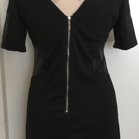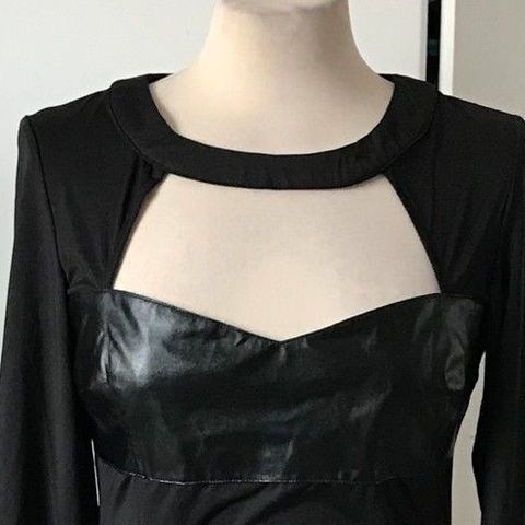 Uusi mekko jossa pitkät hihat ja edessä rinnan kohdalla tekonahkaa. Koko M.